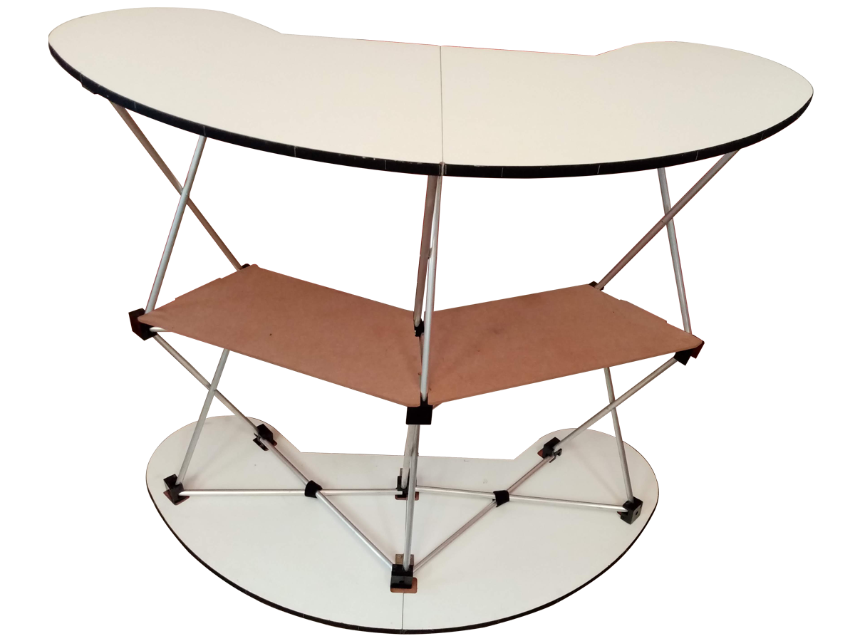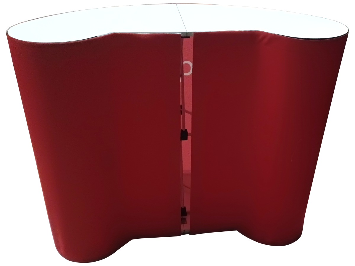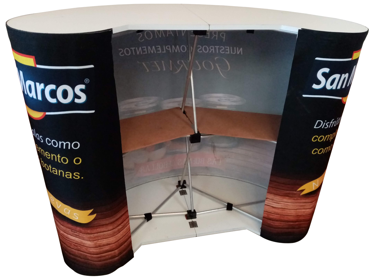 Mesa demostand redondeada expandible usada.